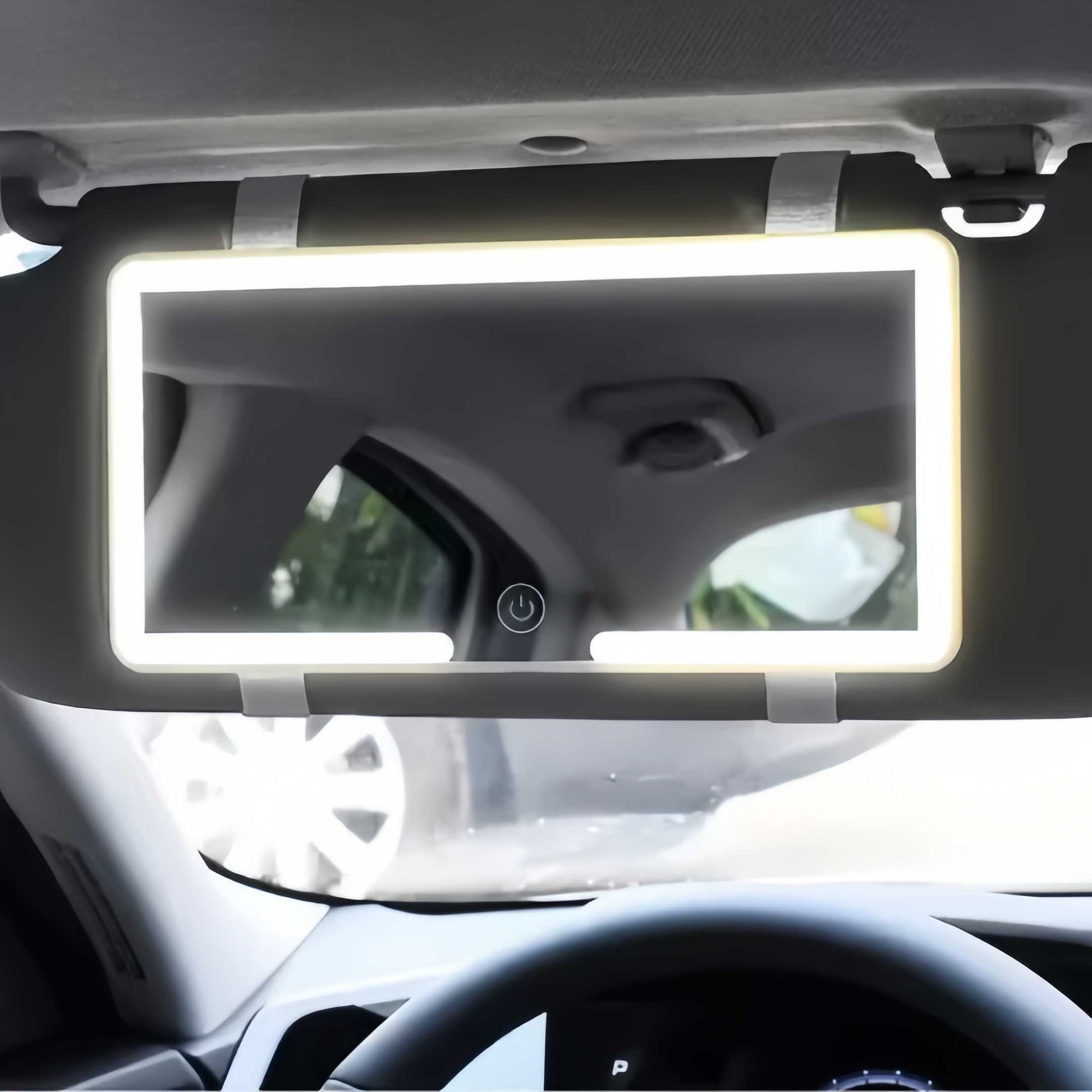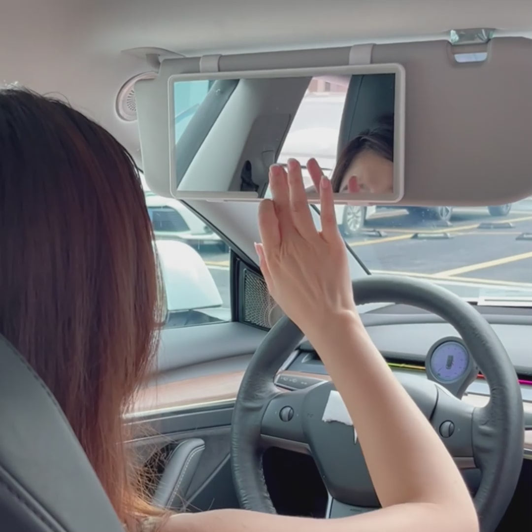 Montaż jest bardzo prosty – wystarczy nałożyć pasy od lusterka na osłonę przeciwsłoneczną w samochodzie.